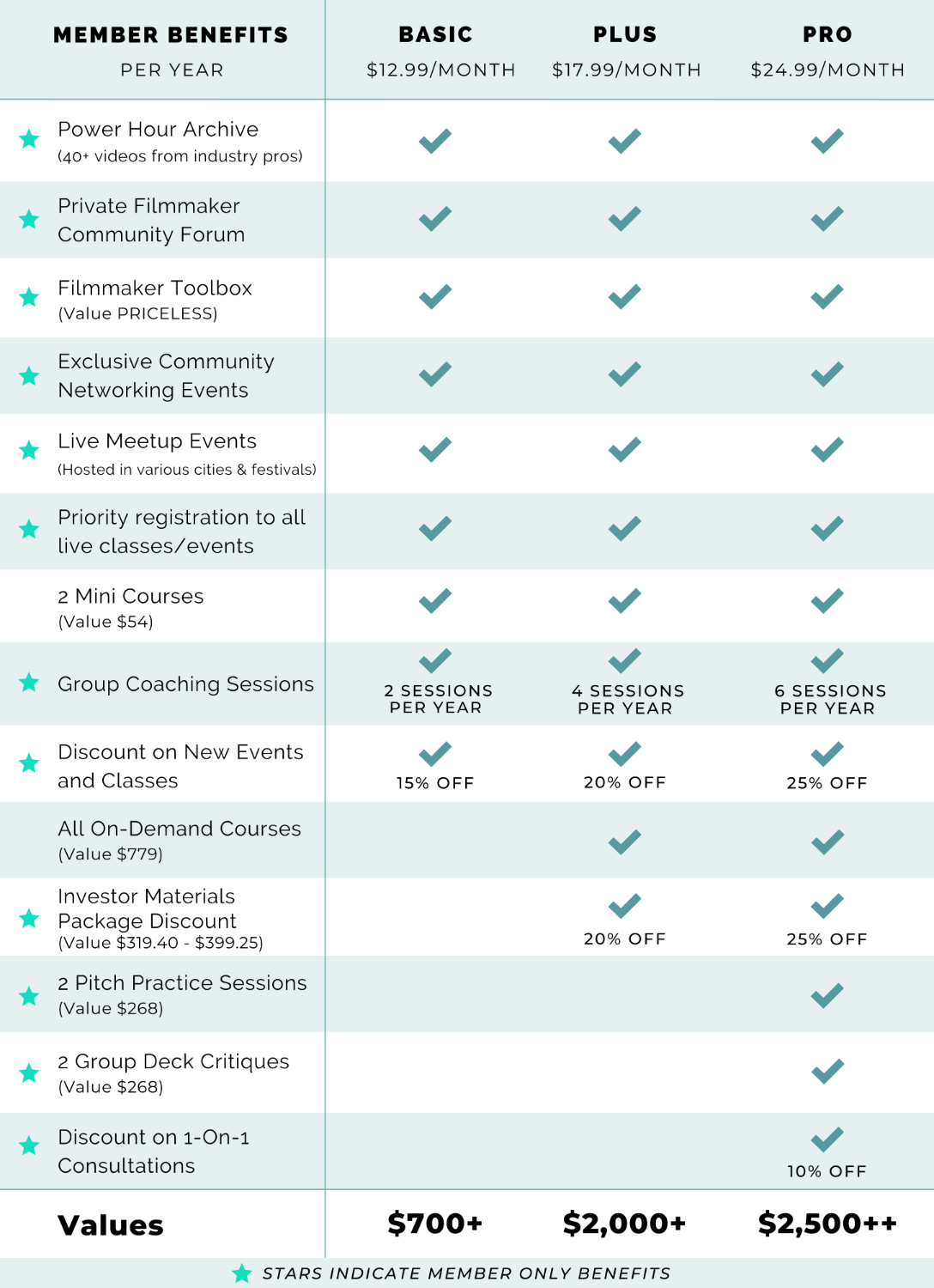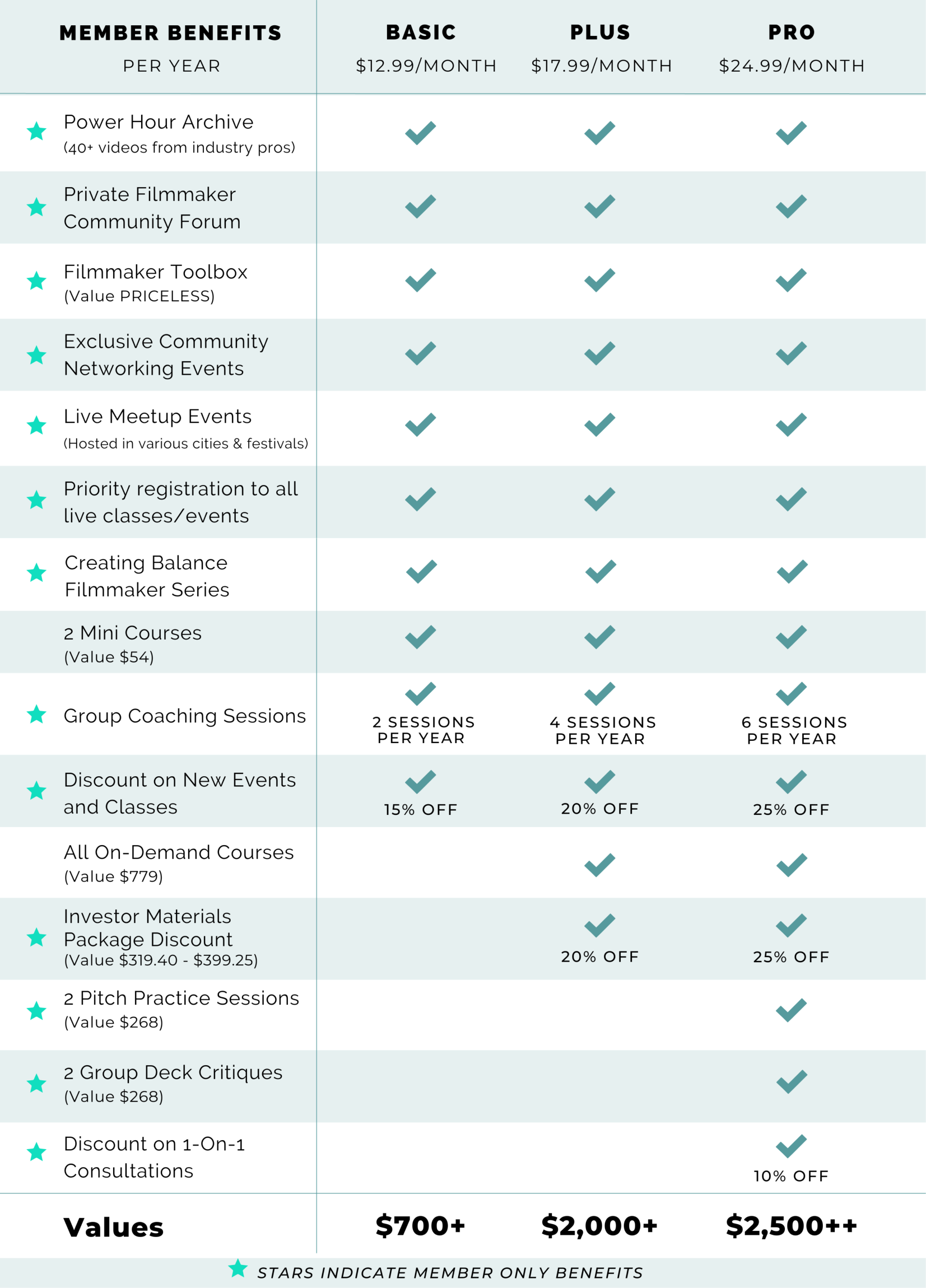 PRIVATE FILMMAKER COMMUNITY PLATFORM - A place to cultivate community with other filmmakers in the membership. We also share exclusive opportunities we hear of directly for members!