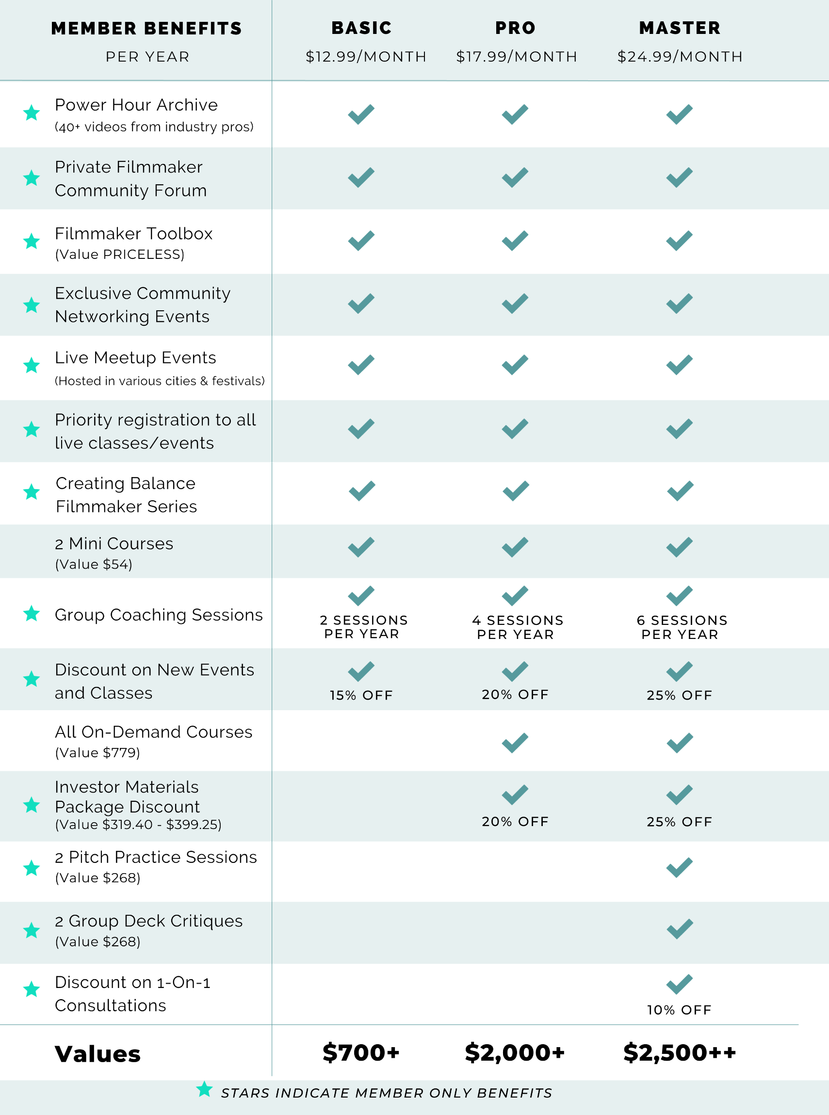 By becoming a master member, you gain unlimited access to all of our courses, events, tools, and Exclusive Member Only offerings (a value of over $3,500!) for less than $1 a day!